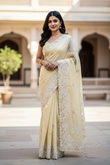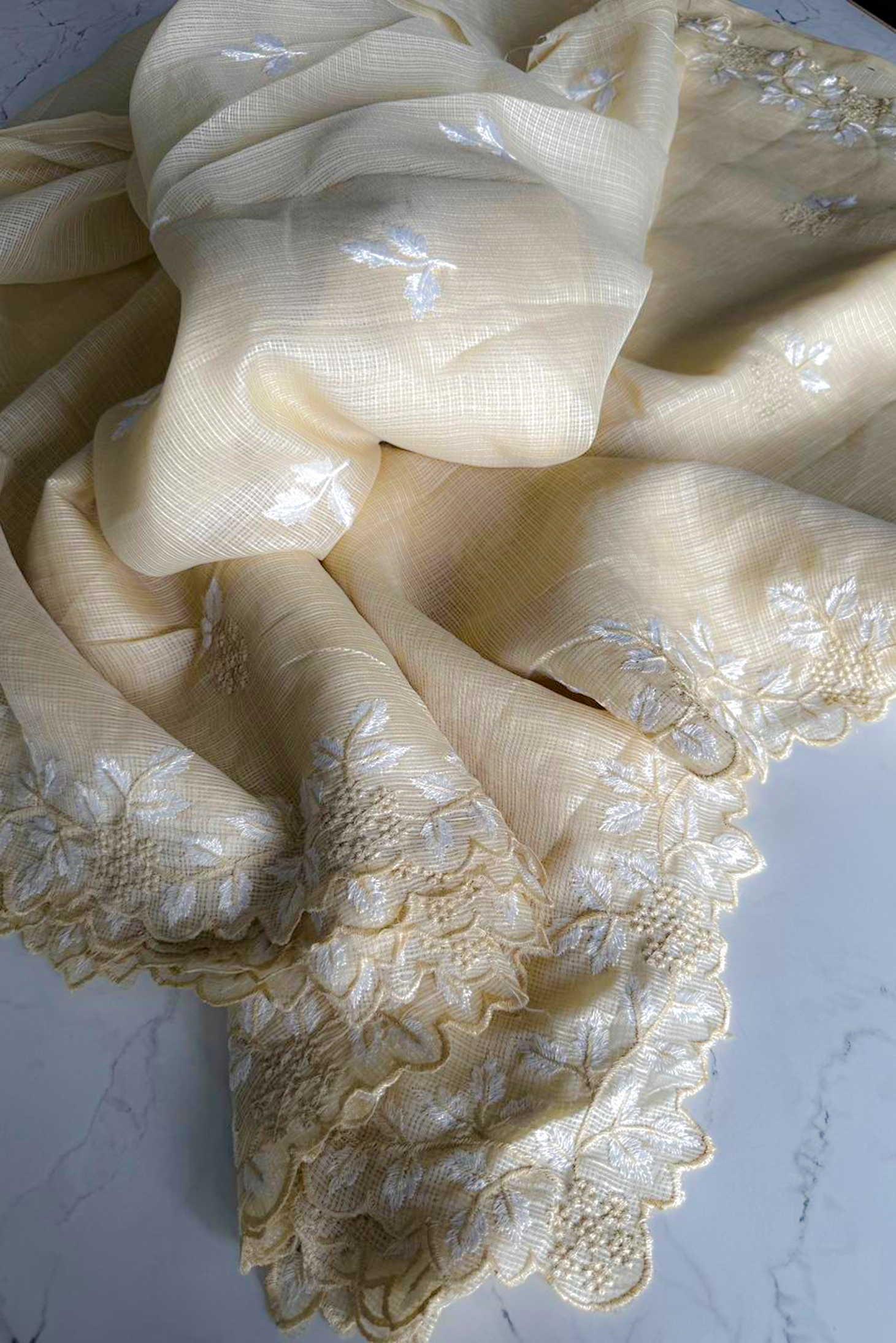 Desert Doria sarees are made from pure tussar silk with cutwork borders and floral patterns.