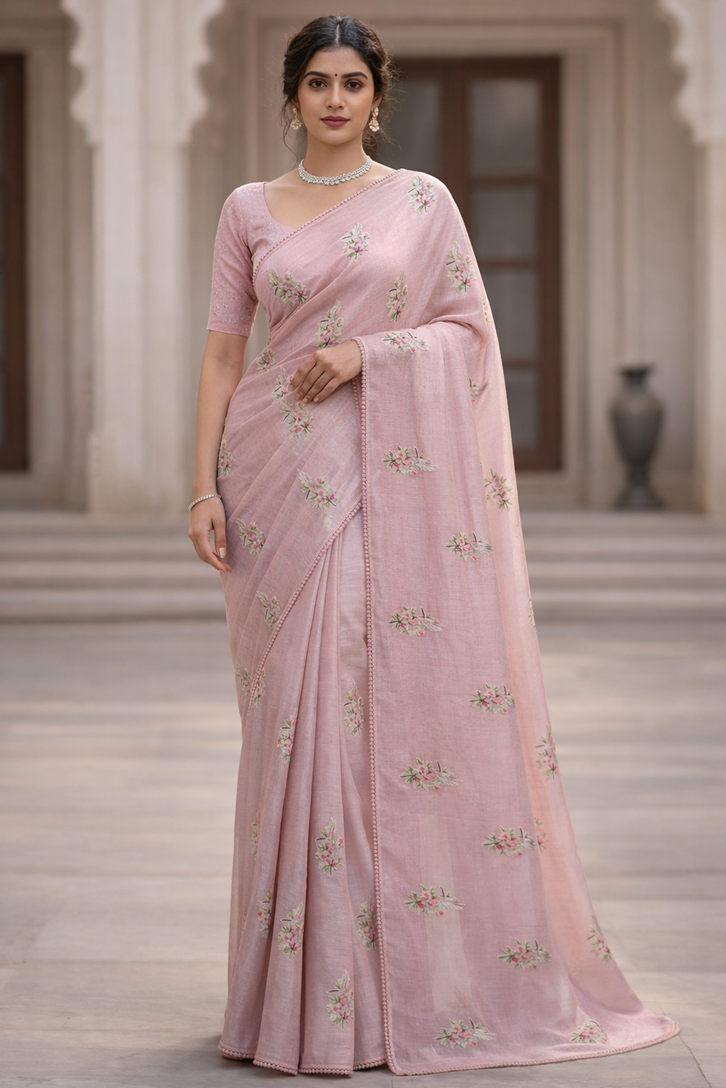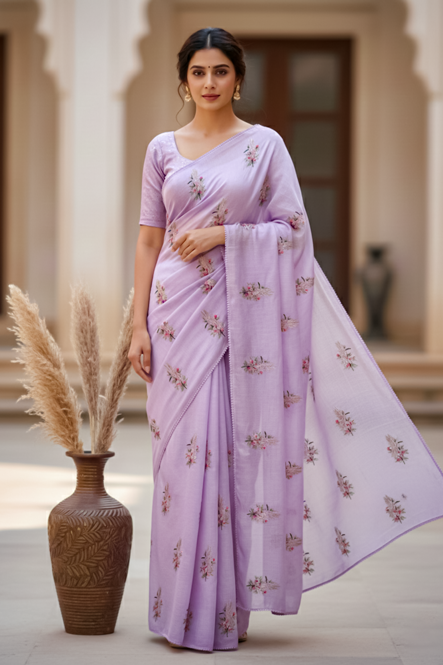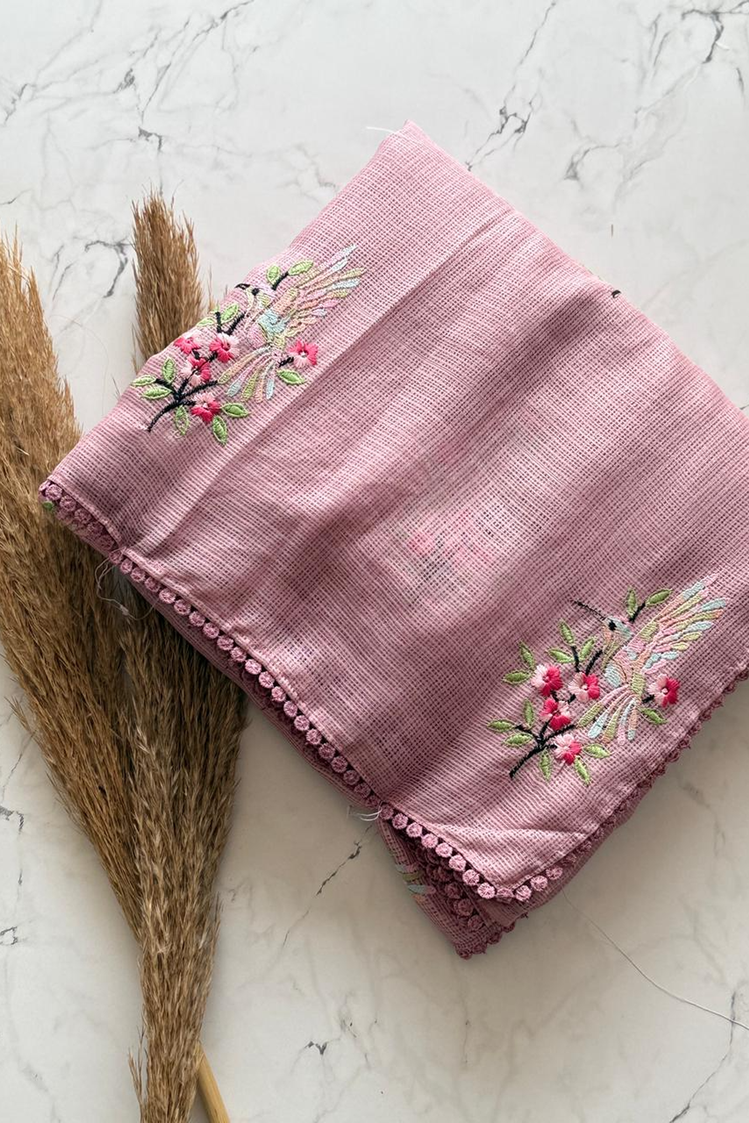 Indulge in the delicate artistry of our 'Hummingbird Garden' Saree, a piece where classic texture meets intricate, vibrant hand embroidery. This saree is perfect for day events, festive gatherings, or simply adding a touch of sophisticated charm to your everyday wardrobe. Elevate your ethnic wardrobe with this exquisite saree, crafted for elegance and style. Available in four stunning colors, this saree blends traditional charm with contemporary sophistication. Made from premium fabric, it drapes beautifully, offering comfort and grace all day long. The intricate embroidery and delicate patterns enhance its luxurious appeal, making it perfect for weddings, festivals, or special occasions. Pair it with your favorite blouse and accessories to create a timeless look.