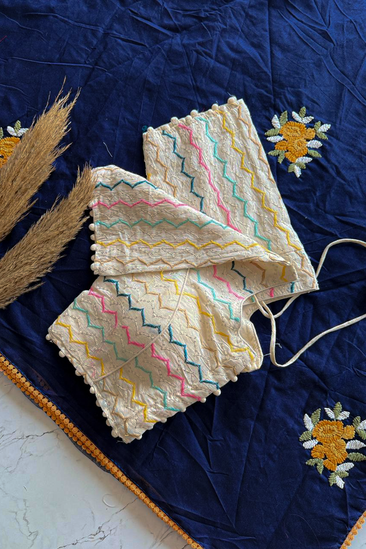 Subhkanya Primium Chanderi Cotton With Knot ANCOR work And Gpo Lace Border with stiched blouse