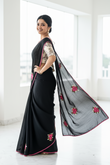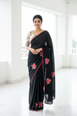 🖤 The Empress Saree: Black Georgette with Handcrafted Pink Blooms