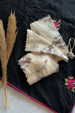 Desert Doria sarees are made from pure tussar silk with cutwork borders and floral patterns.