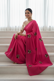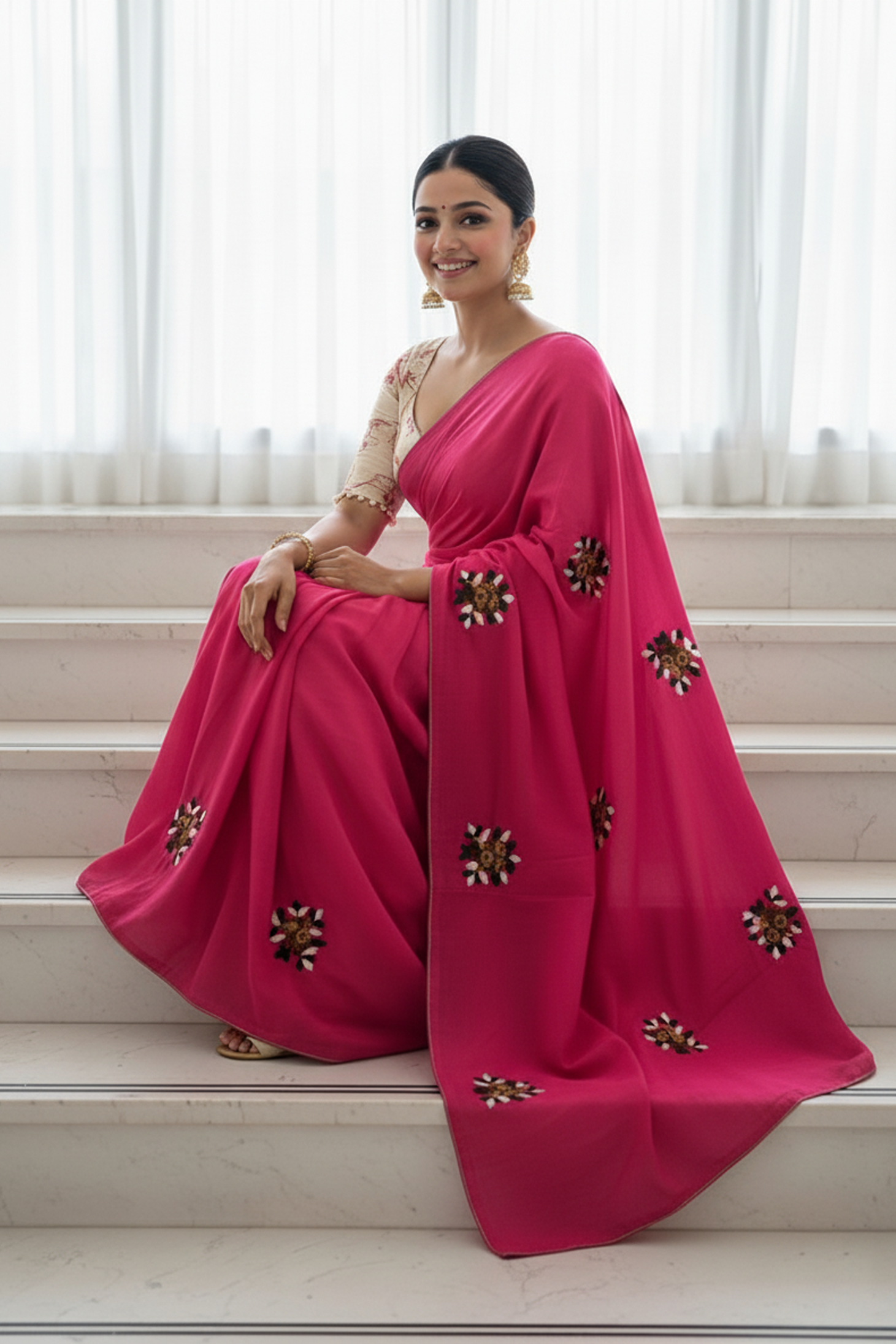 Desert Doria sarees are made from pure tussar silk with cutwork borders and floral patterns.
