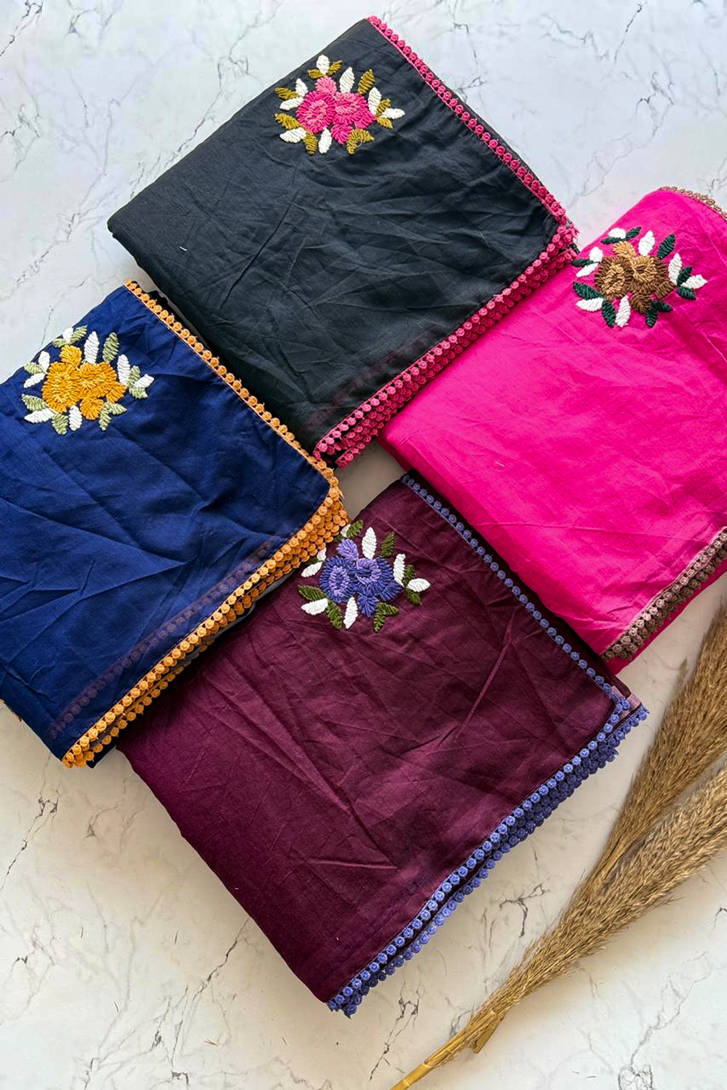 Timeless glamour and bold sophistication. Crafted from a sheer, luxurious fabric like kota Doria, the deep, striking black base provides the perfect backdrop for the vibrant detailing, making it an ideal choice for high-end evening events and formal occasions. Saree Color & Fabric: A sophisticated jet black that drapes beautifully and flows with an ethereal lightness. Fabric kota Doria